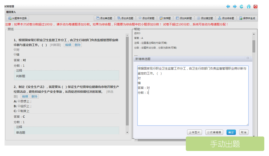 在線考試答題系統、在線培訓考試系統、在線考試培訓系統、網絡在線學習培訓考試系統 考試系統是目前市場上最專業的遠程網絡考試系統,適合政府、 學校及企業的各種形式在線考試、競賽、練習等應用,全面實現了考試工作的網絡化、無紙化、自動化。該系統采用新一代純B/S架構,用于INTERNET和局域網在線考試,可以承載大規模在線考試的需求,而且對服務器的配置要求非常低,客戶端不用任何設置。通過強i大的后臺設置功能,用戶可以根據自身需要設定考試功能,幾乎能滿足企業、政府機構、教育單位的所有需求。