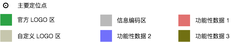 小程序碼有兩個 Logo 區域,分別是中間的自定義 Logo 區和右下角的官方 Logo 區,灰色的區域是小程序碼的數據編碼區,其它彩色區域是小程序碼的功能性數據(主要包括版本、糾錯等信息。