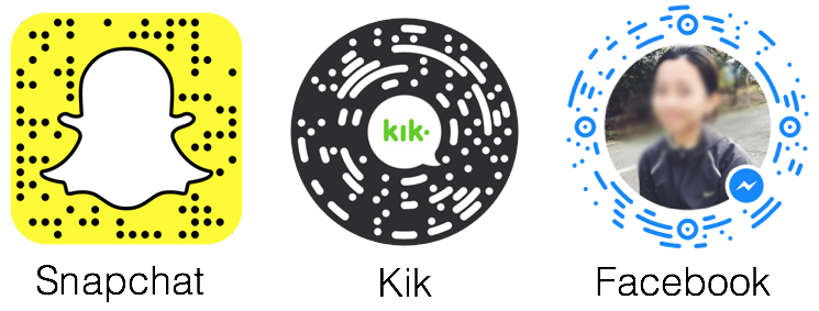 當時就在想,這么不像二維碼的碼真的能掃出來?結果一試還真可以!后面通過查找資料才發現,原來這種異形二維碼并不是微信的首創,Facebook、Snap 等公司都已經推出過類似的異形碼: