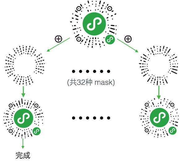 將小程序碼跟 32 種掩膜(又稱「mask」,可依照一定的規則生成)進行異或運算,最終選取效果最佳的作為最終的小程序碼。